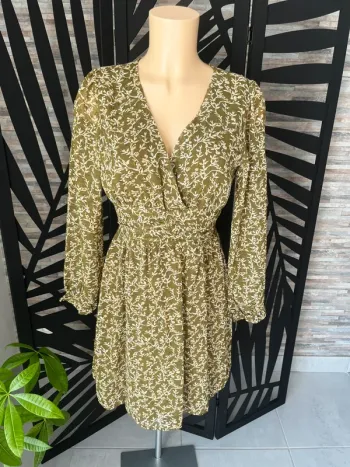 Robe marron col V croisé. Manches courtes. H&M. Taille M