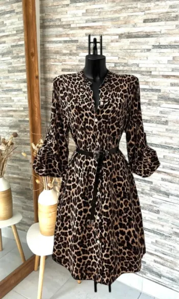 Robe en mousseline mi longue à manches longues ballons de chez stradivarius
