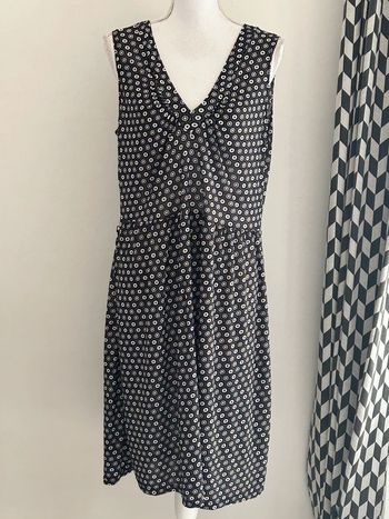 Robe sans manches bleu à pois noir lien à nouer découpes dans le dos / sans marque / (42-44)