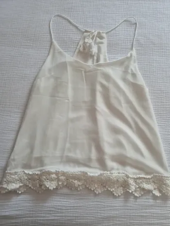 Débardeur rose poudré avec palmiers dorés Camaïeu taille L