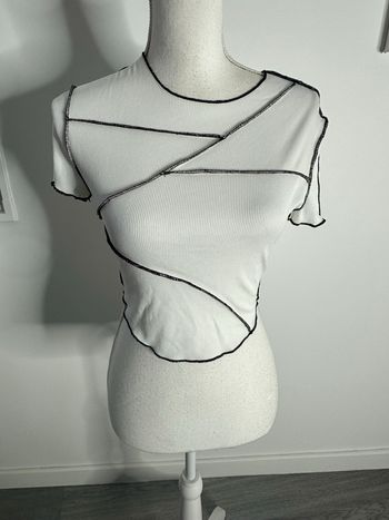 T-shirt crop top blanc et noir coutures apparentes Y2K T36 S