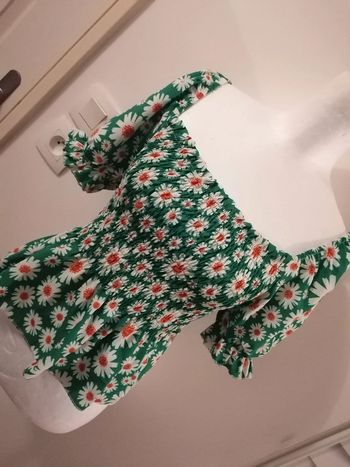 Haut rayé col carré épaules découvertes marron blanc et beige taille 36 vintage très bon état