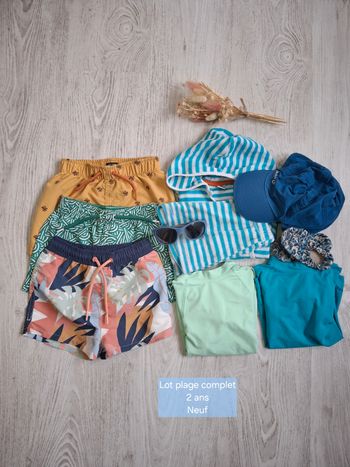 Lot plage garçon anti-UV short et accessoires 2 ans