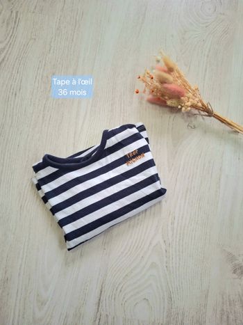 Haut/T-Shirt marinière blanc/marine garçon Tape à l’Oeil/TAO – 36 mois