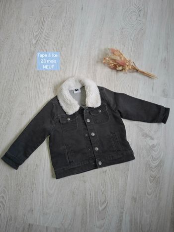 Veste bébé garçon style denim anthracite col mouton Tape à l’œil/TAO 23 mois – NEUVE