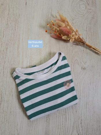 T-shirt marinière vert/blanc fille Vertbaudet – 6 ans
