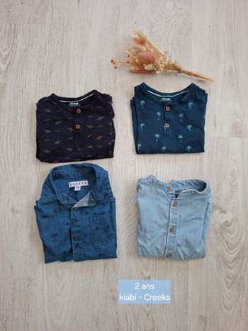 Lot/ensemble tee-shirt/chemise garçon bleu kiabi/creeks - 2 ans