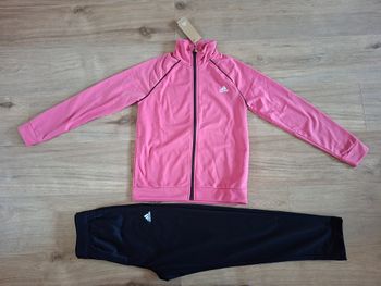 Ensemble de sport sweat zippé rose +pantalon noir Adidas 11/12 ans