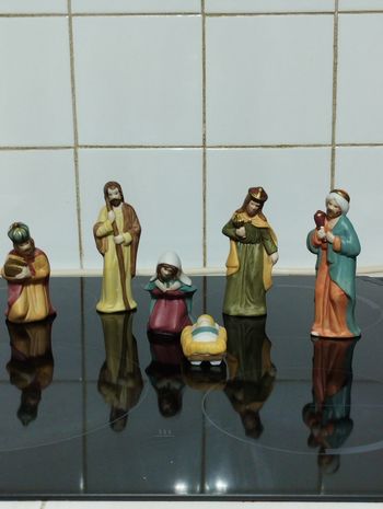 Lot de 6 santons et 2 boîtes de santons 10 pièces voir photos 3 et 4 hauteur de 10 a 13 cm