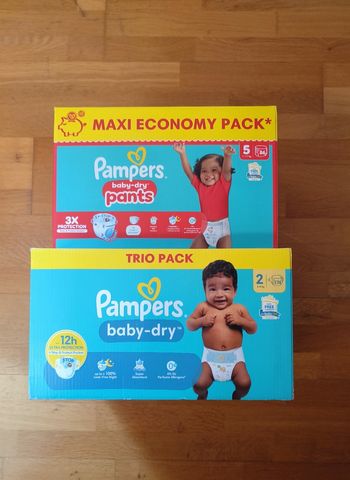 1 trio pack Pampers baby dry taille 2 et 1 maxi economy pack Pampers baby dry pants taille 5