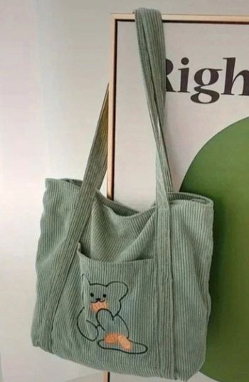 Très joli sac nounours en velour côtelé Vert clair