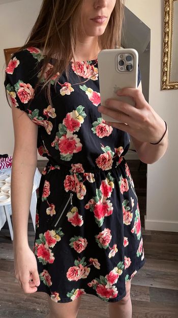 🌟 Robe noir à motifs fleurs et détails effet velours et transparence