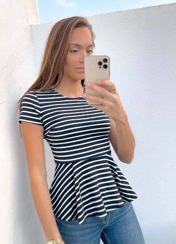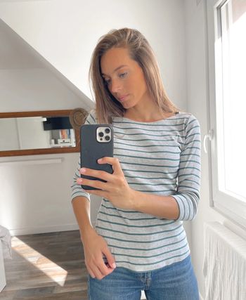 🌟 Haut manches courtes neuf avec etiquette à rayures bleu marine et blanc