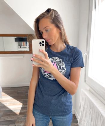 Tee shirt bleu marine blanc et rose à motif Reebok