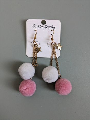 Boucles d'oreilles pompons roses et blanches avec étoile