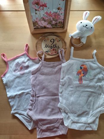 Bodies manches courtes pour fille taille 9mois marque Gémo très bon état