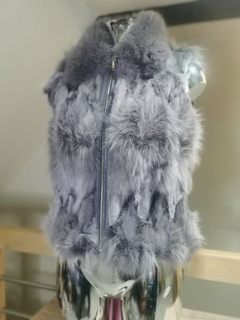 GILET SANS MANCHE FOURRURE GRIS ANTHRACITE