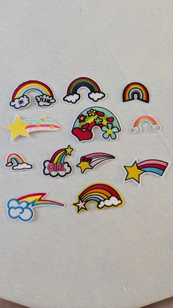 Lot de 12 patchs brodés thermocollants arc en ciel