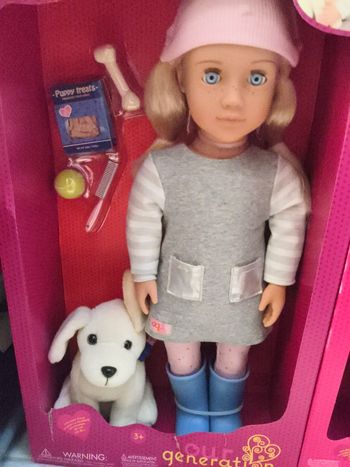 Poupée 46 cm accompagnée de son chien et des accessoires neuve