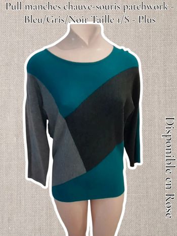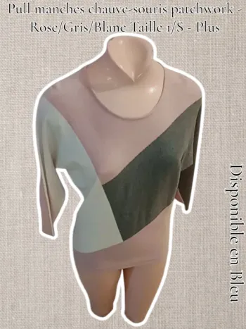 Pull manches chauve-souris patchwork - Rose/Gris/Blanc - Taille 1/S