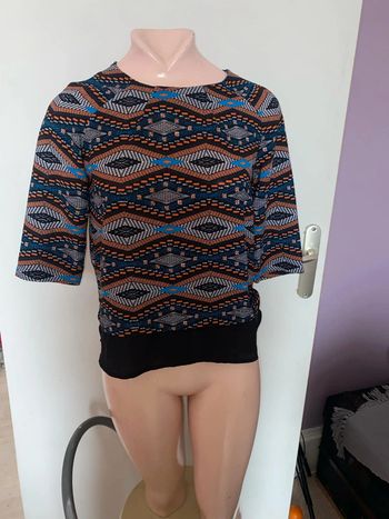 Pull 3/4 manches - Noir/Fleuris - Taille S - Promod