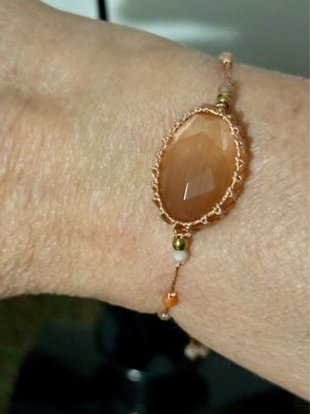 Bracelet pierres et perles naturelles acier inoxydable or réglable