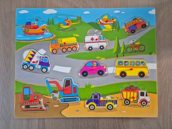 🚗 Puzzle à boutons en bois Véhicules