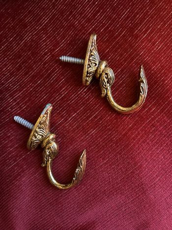 Paire de Crochets Embrasses Rideaux - Style Ancien / Baroque - Laiton Doré