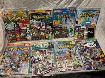 8 kits magazines + 23 boosters + jeu Pokémon neufs scellés