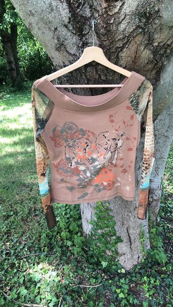 T shirt marron éléphants
