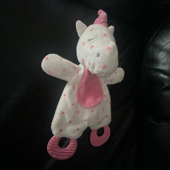 DOUDOU PLAT LICORNE ZDT ACTION ANNEAU DENTITION BLANC ROSE 23 CM