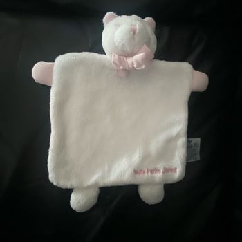Doudou plat chat ours blanc rose Toute petite Jacadi Noeud rose 20cm