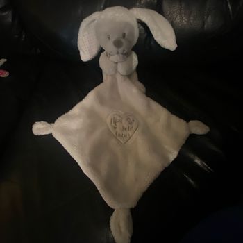DOUDOU LAPIN BLANC POIS GRIS MOUCHOIR MON PETIT COEUR POMMETTE