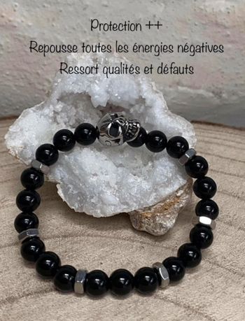 Bracelet obsidienne tête de mort et boulons 18 cm , lithothérapie