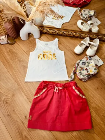 Taille 5-6 ans robe longue créateur fille TAO crème et bronze * sequins et tulle * 💐
