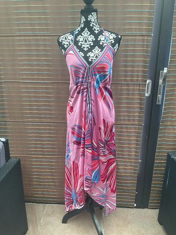 Longue robe rose/vert imprimé T 44 Neuve (n°11)