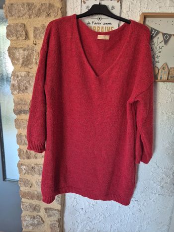 Pull long oversize rouge bordeaux col V grande taille unique Made in Italy