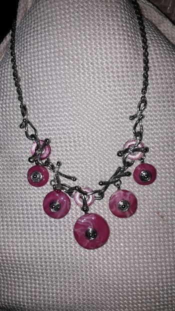 Collier rose fantaisie argenté