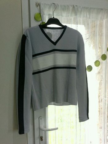 Pull d'hiver gris pailleté .col roulé. Manches courtes taille 38