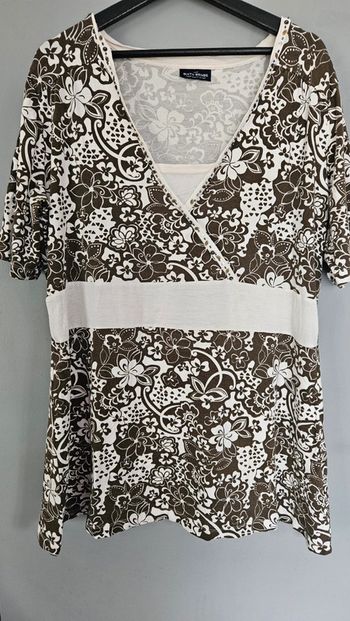 Tunique marron et blanc à fleurs- sequins- T48 C&A