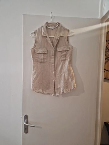 Chemisier femme été débardeur manche courte beige lin coton TBE T38 camaïeu