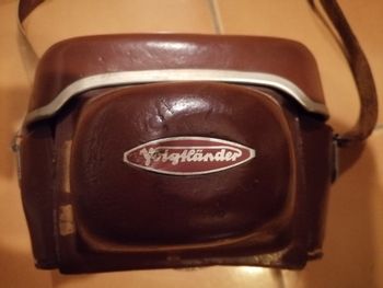 sacoche rigide en cuir beige pour appareil photo ou autre Sacar