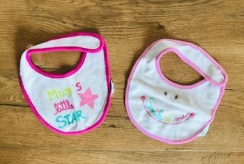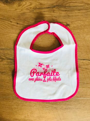Bavoir Rose avec phrase Parfaite avec pleins de jolies défauts