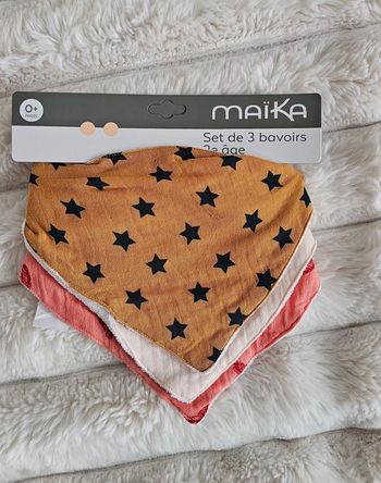 Lot de 3 bavoirs bandanas 100% Maïka Neufs