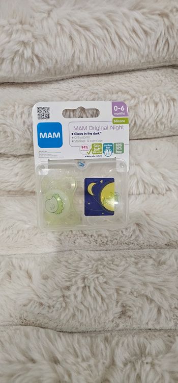 Lot de 2 sucettes orthodontiques Mam Original Night 0-6 mois Neufs