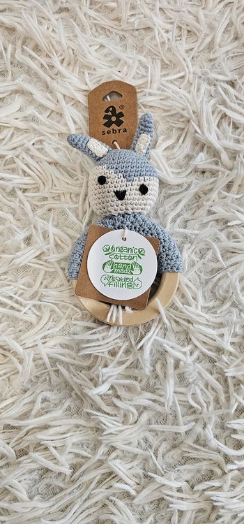 Magnifique hochet en bois et en crochet coton biologique Neuf