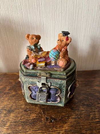 tirelire en résine « 2 oursons sur un vieux coffre »