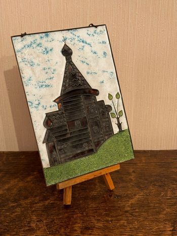 Plaque murale vintage « église russe » en cuivre émaillée