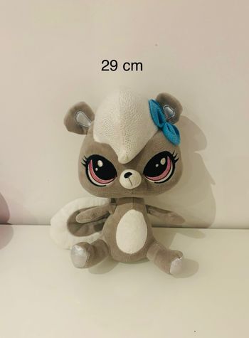 Hasbro édition rare Famosa 2014 Littlest Pet Shop LPS peluche moufette Pepper Clark moufette pelage gris et blanc yeux roses skunk plush Russel Blythe Baxter Zoé Trent Minka Mark Sunil Nevla rare collection lot SOP77