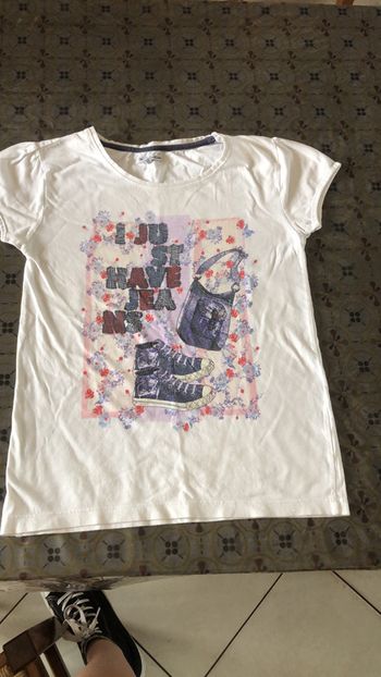 Robe rouge à bretelles à fleurs blanches Kiabi 12 ans
